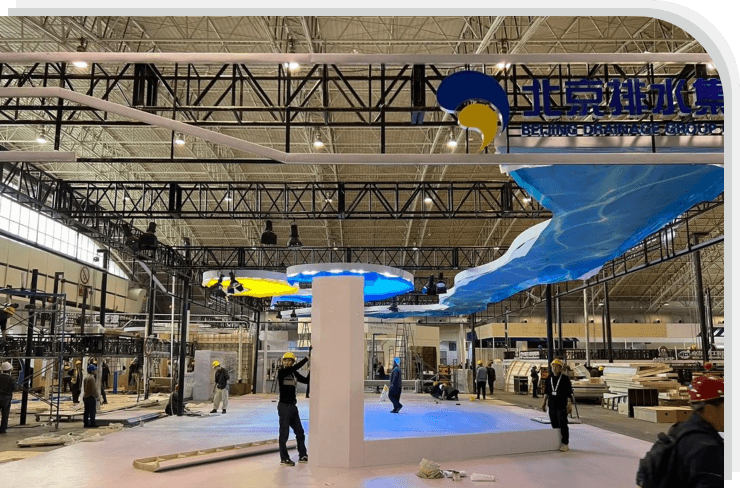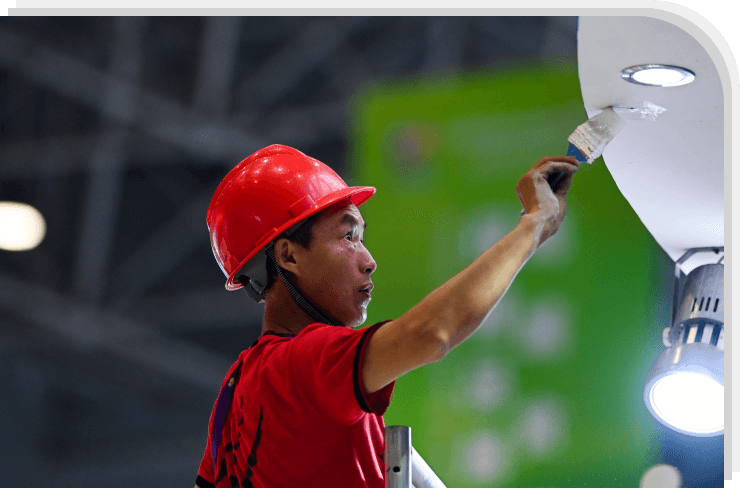 搭建施工,提前辦理好進館手續,按照規定的搭建時間準時進場搭建、現場有專人對接,嚴把項目進度和施工質量。